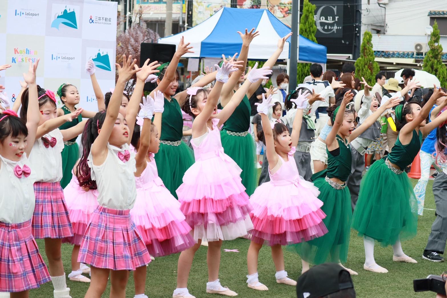 第50回を迎えるにしのみや市民祭りの“小学生部門 ダンスコンテスト”に出演!全6組の小学生チームがとびきりの演技を披露しました。オーディションで選ばれた13名のKDT選抜メンバーは、皆様の応援をエネルギーに最高のパフォーマンスをすることができました。